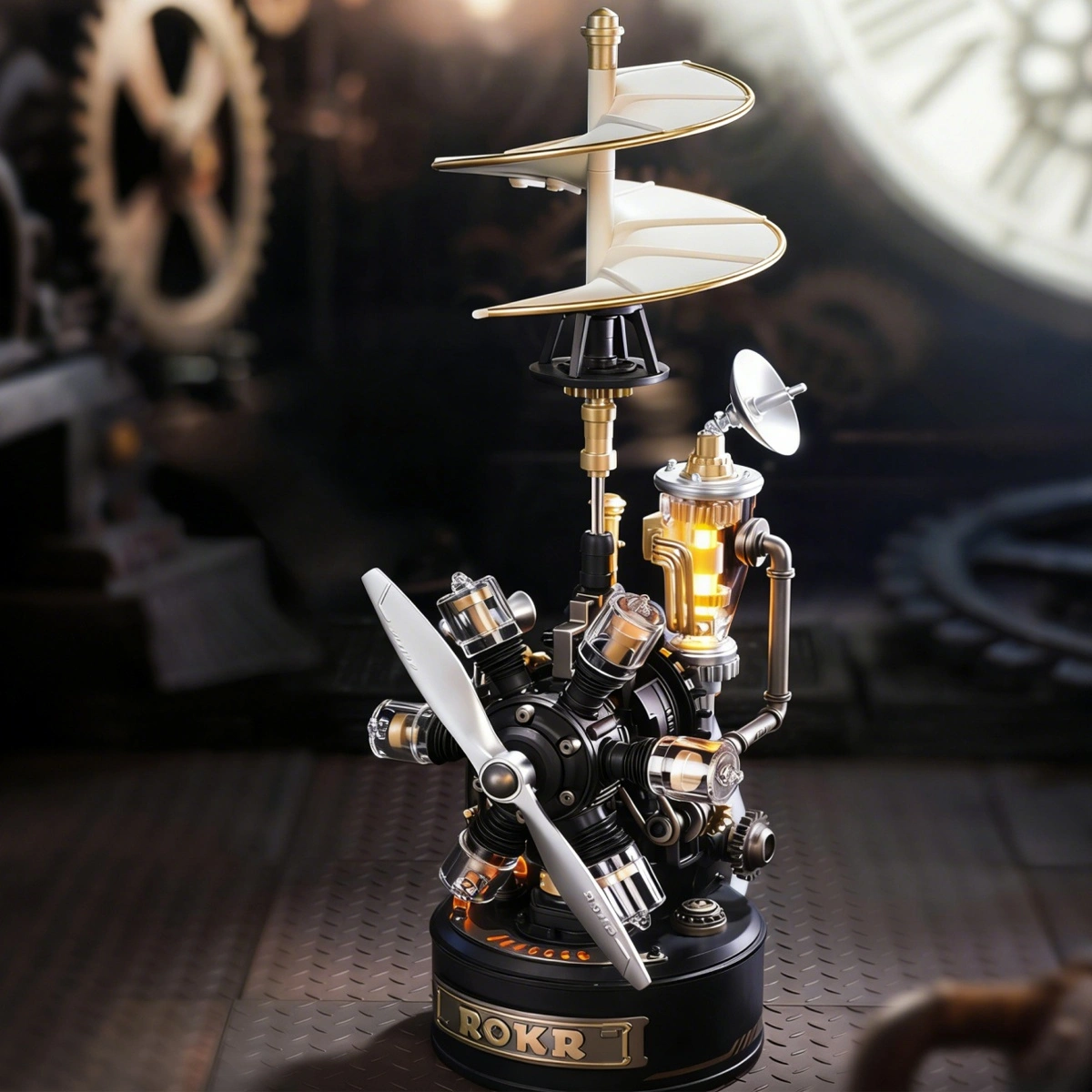 Crafted for the dreamers who ask, “How does it really work?”, this kit reimagines da Vinci’s visionary flying machine with stunning accuracy. The rotating blade mechanism spins freely (yes, it’s functional!), while the detailed cockpit and interlocking gears make every piece feel like a miniature engineering marvel. Made from premium, non-toxic ABS plastic, it snaps together effortlessly—no frustration, just pure satisfaction. And because it’s part of the Rokr Industrial City ecosystem, it’s not just a standalone model. Pair it with expansion packs (sold separately) to build a full airfield: hangars, control towers, and even a solar-powered energy hub. Your desk becomes a living museum of innovation.